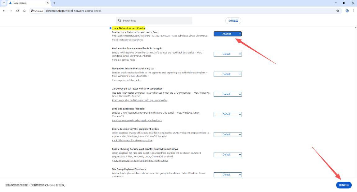 1. 在浏览器地址栏输入:chrome://flags/#local-network-access-check 并回车。